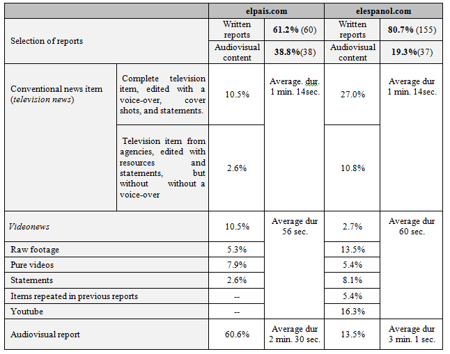 New audiovisual formats in the cybermedia: from TV reports to videonews